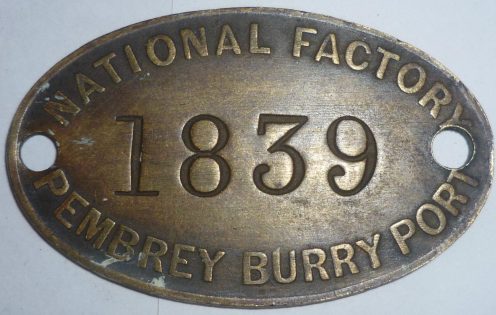 Obverse: Raised legend around outer raised rim borders reads NATIONAL FACTORY PEMBREY BURRY PORT . Incusely stamped number in centre field reads 1839