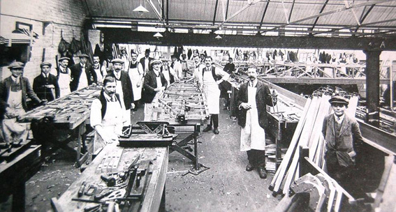 These establishments, totalling at least 43, were set up to manufacture light calibration shell casings. They were run by Munitions Committees who organised themselves throughout the country. The members of these committees comprised the senior management of smaller engineering firms, many of which had previously acted as sub-contractors to the large national armament companies. The first of the NSFs was established in the Leeds area where a number of engineering companies co-operated with the production of light shells. Each NSF was run by a local board of management that represented the main engineering companies in the area. The urgency of initial demand for shells necessitated that factories were established in existing buildings such as railway workshops, textile mills and tramway depots.