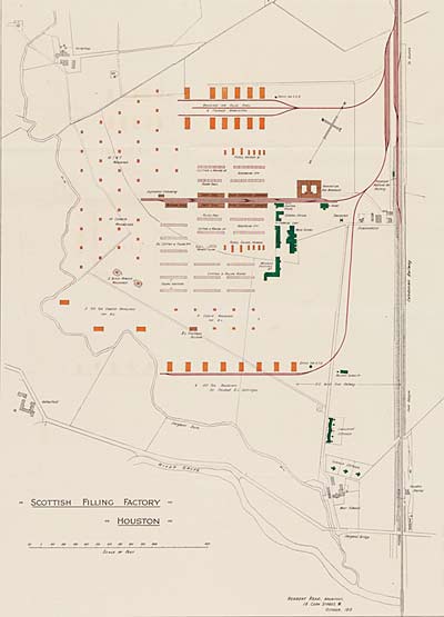 William Weir, the Director of Munitions in Scotland, was given the task of overseeing the building of The Scottish Filling Factory or National Filling Factory (N.F.F.) No.4. The site selected for the factory comprised 250 acres of agricultural land at Fulwood near Houston in Renfrewshire. The site was chosen due to its close proximity to Glasgow, Paisley and Greenock although daily commuting distance for such a large workforce as expected still necessitated the building of new housing adjacent to the factory for the labour force.