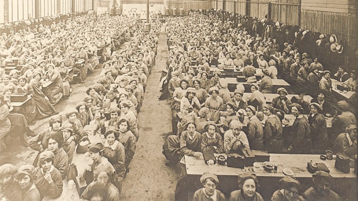 Women munitions workers in the canteen of the National Projectile Factory, Lancaster.
