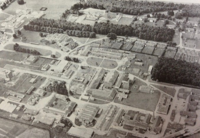 An aerial view of the Chemical Defence Experimental Establishment (CDEE) at Porton Down, Wiltshire, c.1950s-60s
