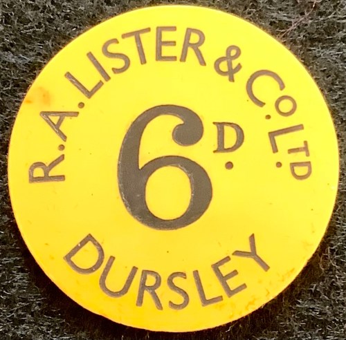 Obverse: Legend around upper edge reads R.A. LISTER & Co. LTD.and around bottom edge DURSLEY. In the centre field, the mark of value 6D. .