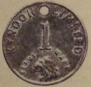 Obverse: Legend around upper half reads KYNOCH LIMITED with a large raised number 1 in the centre field below which is a lion’s head facing left with the words TRADE and MARK either side of it.