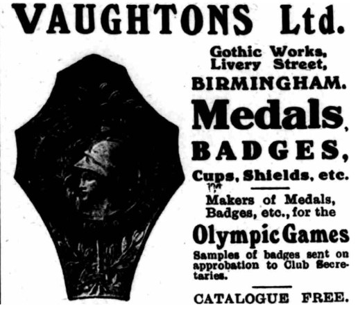 From c.1896-1901, both companies produced products bearing the maker’s signature “VAUGHTON BIRM.”. This signature appears to have continued to be used on similar products after the formation of Vaughtons Ltd. However, other maker’s signatures are also known from various of the company’s medals from before and after the above dates.