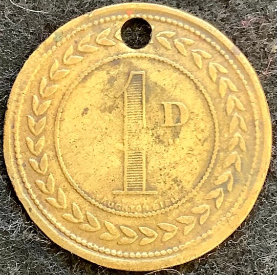 In addition to their maker’s signature, many of the checks and tokens issued by Vaughtons Ltd. can be readily identified from their very distinctive reverse designs. This typically comprises an anticlockwise string of tulip petals between two concentric beaded borders with a mark of value in the centre field. While similar, it is different from the full string of tulip flowers which is a characteristic of similar products produced by Ardill of Leeds.